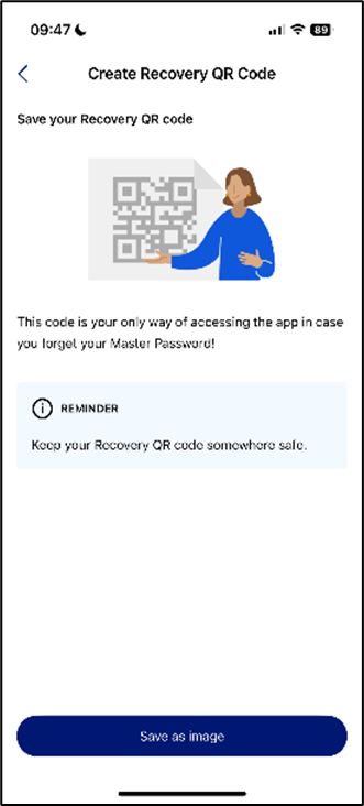 |     Step 2: Create your master password Tap ‘Continue’ Then you will get QR Code