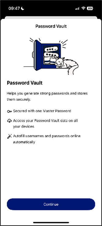Step 1: Select ‘Password Vault” And tap ‘Continue’