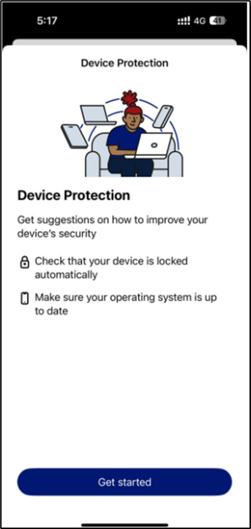 Steps: Select ‘Device Protection’ Tap ‘Get Started’ Device Protection is now activated to ensure your OS is up-to-date and device lock is always enabled