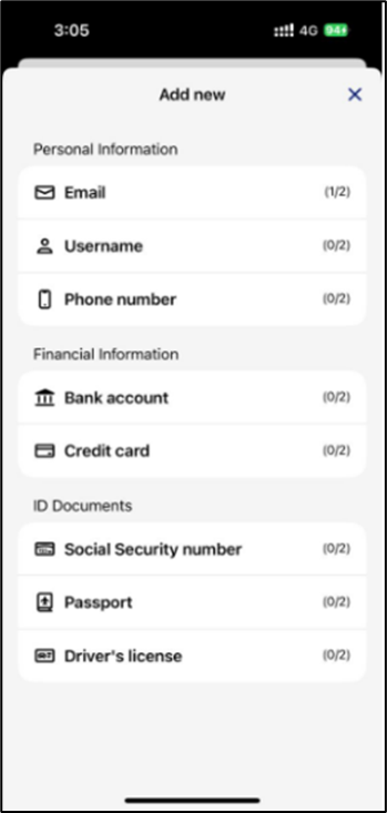 Step 3: Add and store your password or credit card details safely in Password Vault – so you’ll never forget them. |