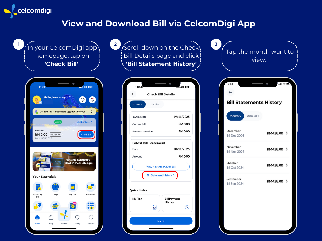 Looking for your annual bill to file your taxes? Read here to know how to download your annual bill statement (only applicable for Celcom subscribers).
