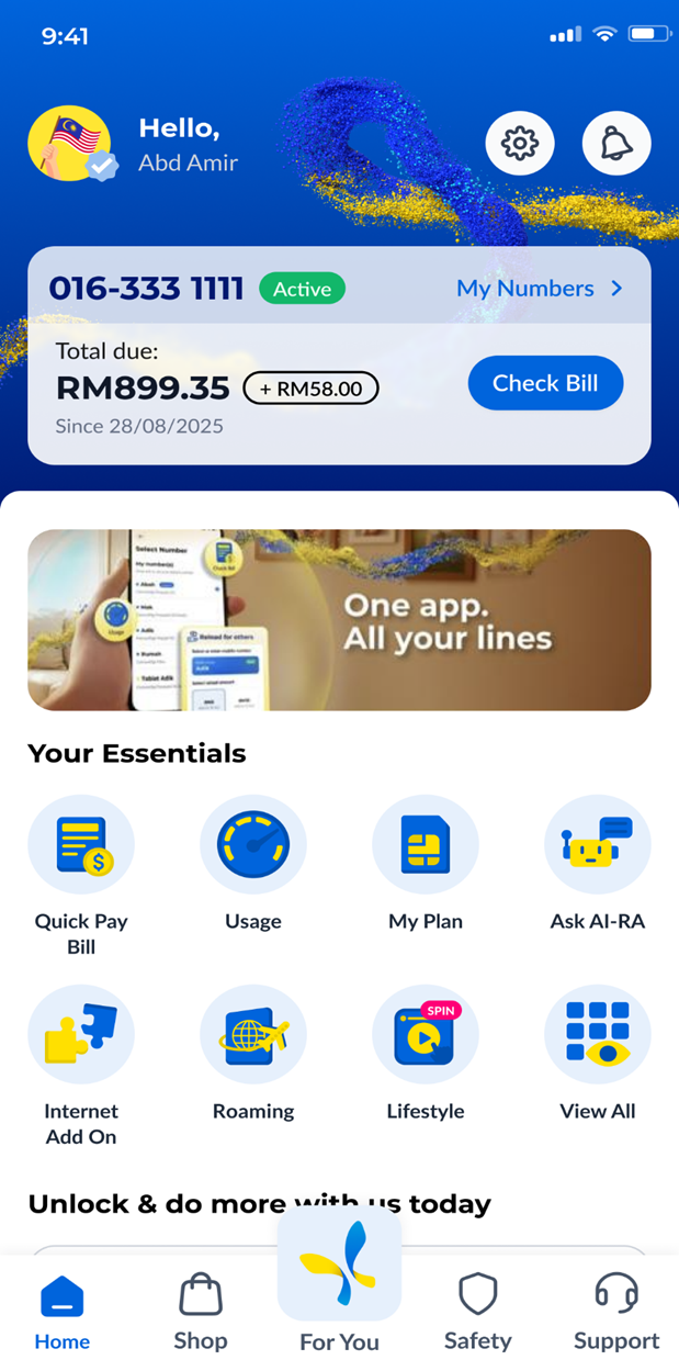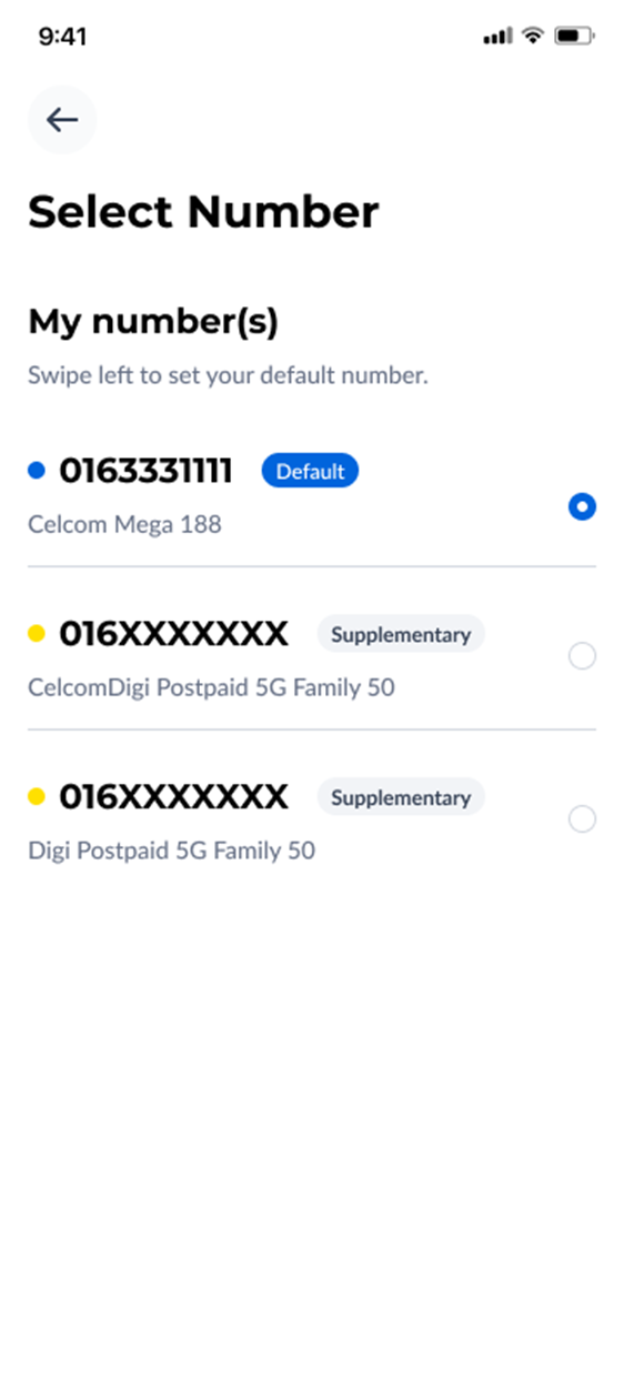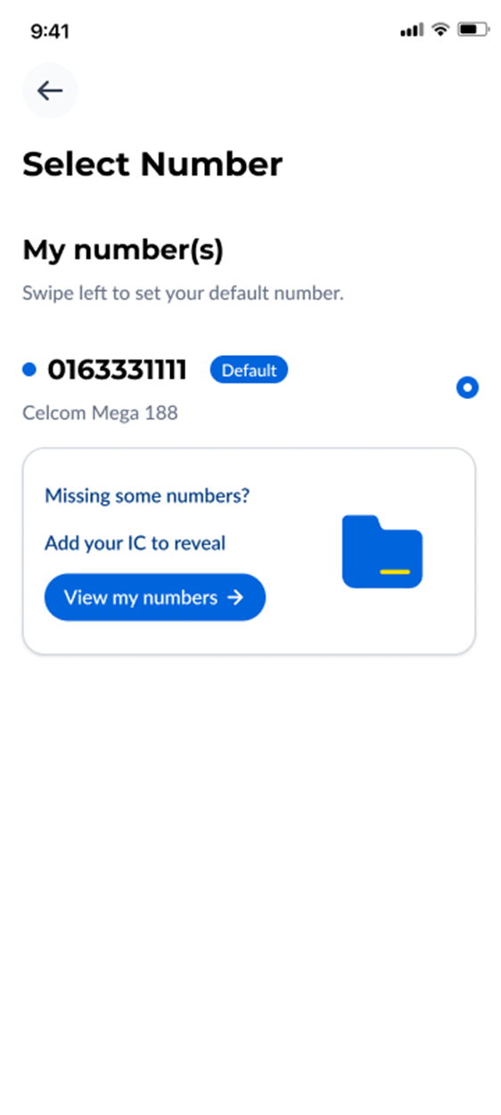Step 1: On your CelcomDigi app homepage, tap on 'My Numbers' beside your mobile number | |