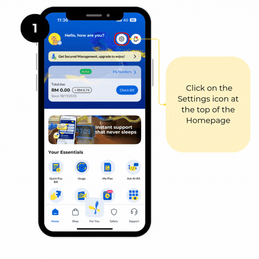 Set up and manage your payment method with CelcomDigi app for hassle-free payments.