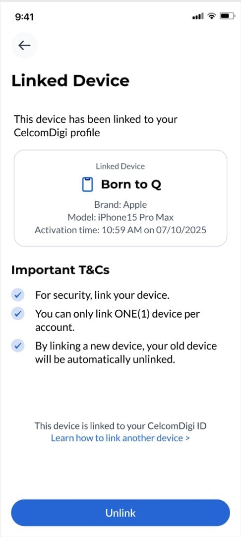 Check out the quick step-by-step guide below to learn how to unbind your previous active session on CelcomDigi app from your old device and log into the app using your new device.