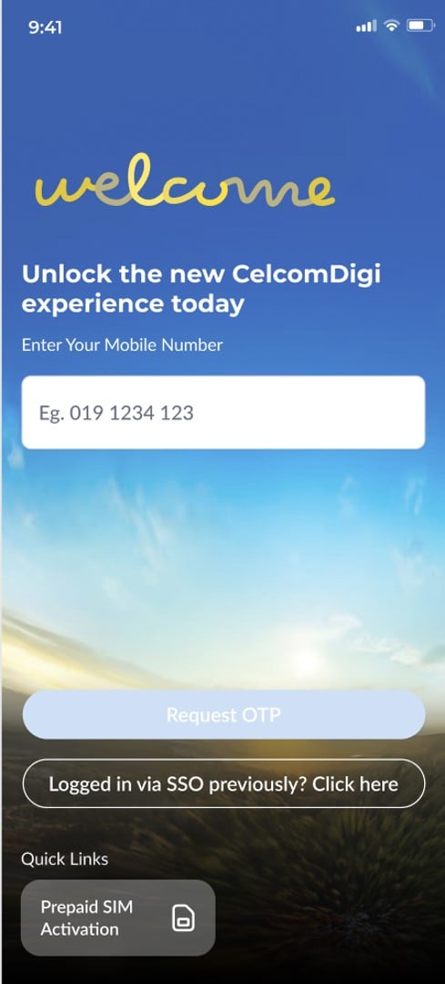 Step 1: On the CelcomDigi app login page, select ‘Logged in via SSO previously? Click here’ | ![]() |