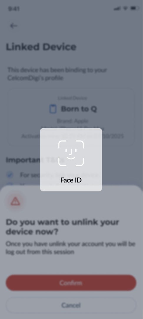Step 3: To unlink successfully, select ‘Confirm’ on the confirmation prompt and complete biometric verification. | ![]() |