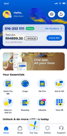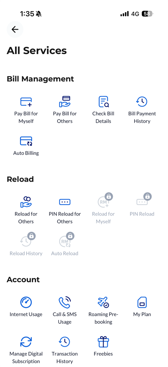 Transaction History: Check your purchases like vouchers or roaming passes.