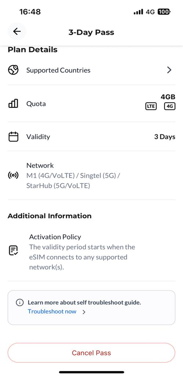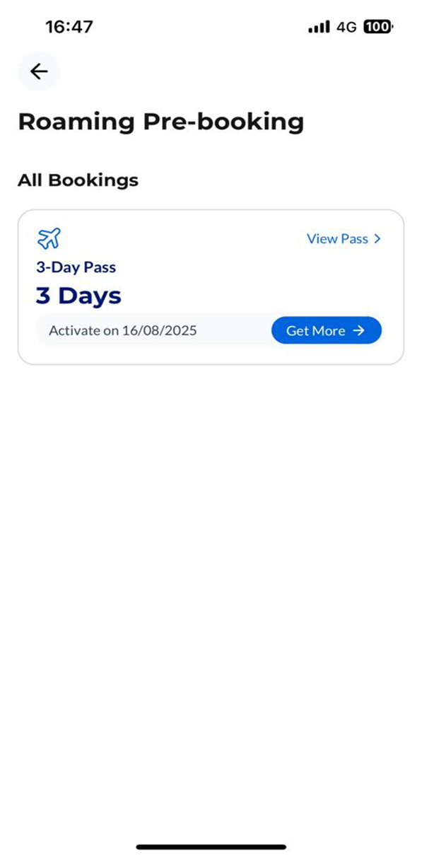 Step 3: Select your preferred roaming pass.