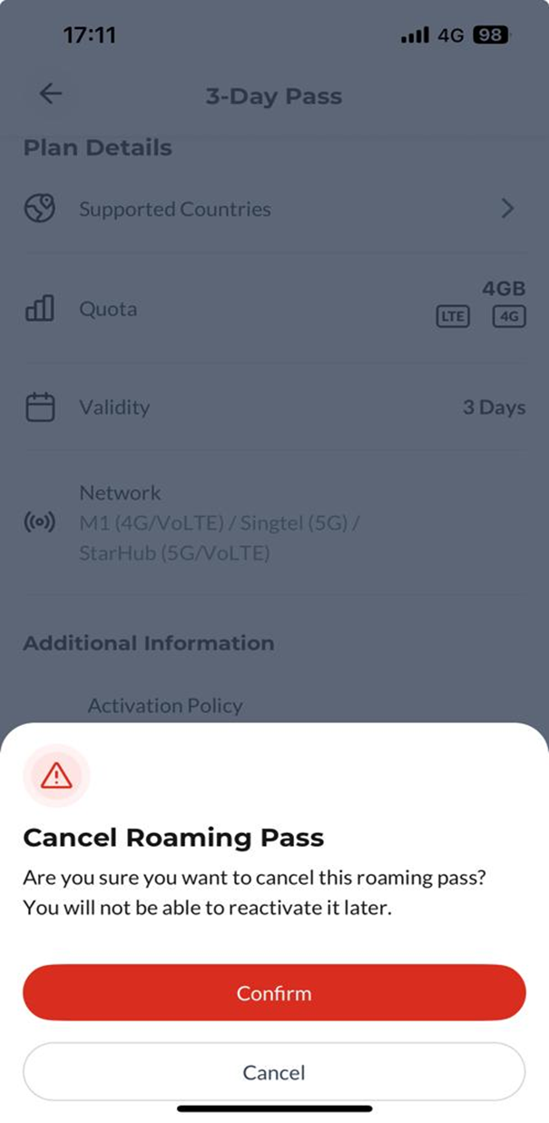 Step 4: Your pass has been successfully cancelled.