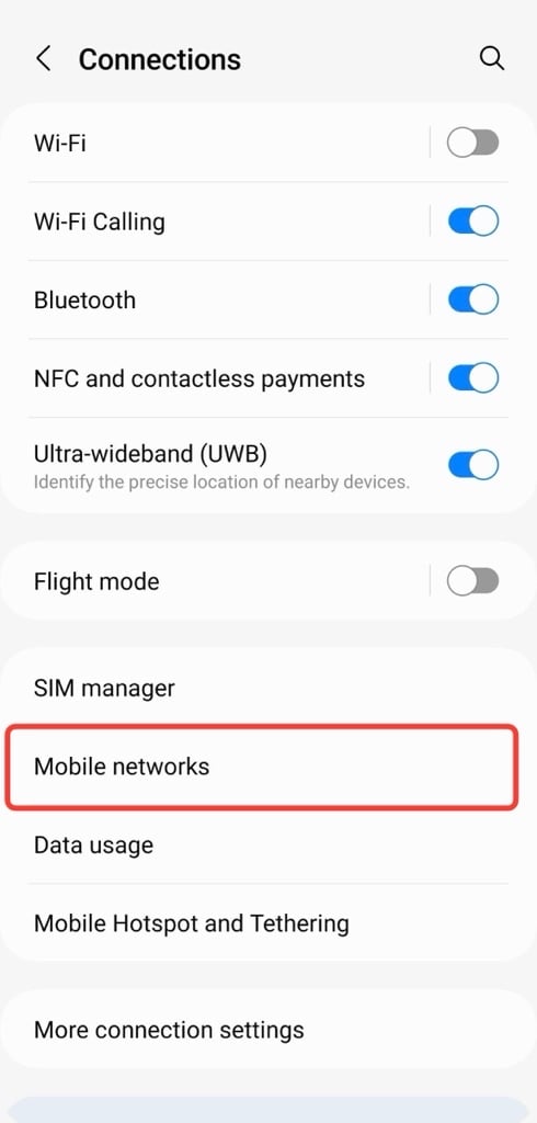 Langkah 1: Buka Tetapan, kemudian klik 'Sambungan' ![]() | Langkah 2: Pilih 'Rangkaian Mudah Alih'