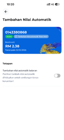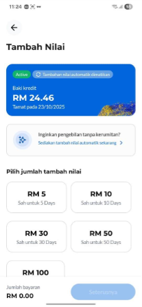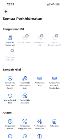 Perbankan dalam Talian | Bank-bank utama di Malaysia seperti Maybank dan CIMB biasanya menawarkan ciri ini dalam aplikasi perbankan mereka. Sila semak aplikasi perbankan pilihan anda untuk tambah nilai akaun prabayar anda. |