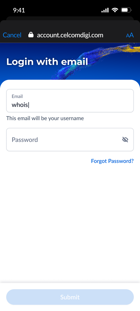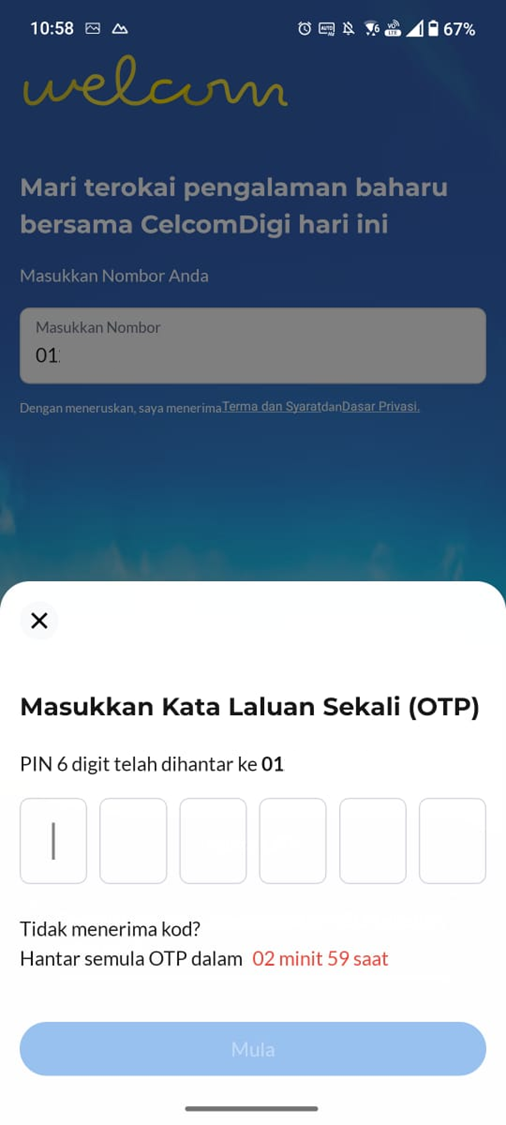 Terdapat 3 cara untuk log masuk ke aplikasi CelcomDigi anda.