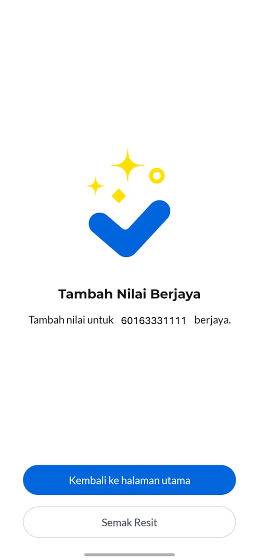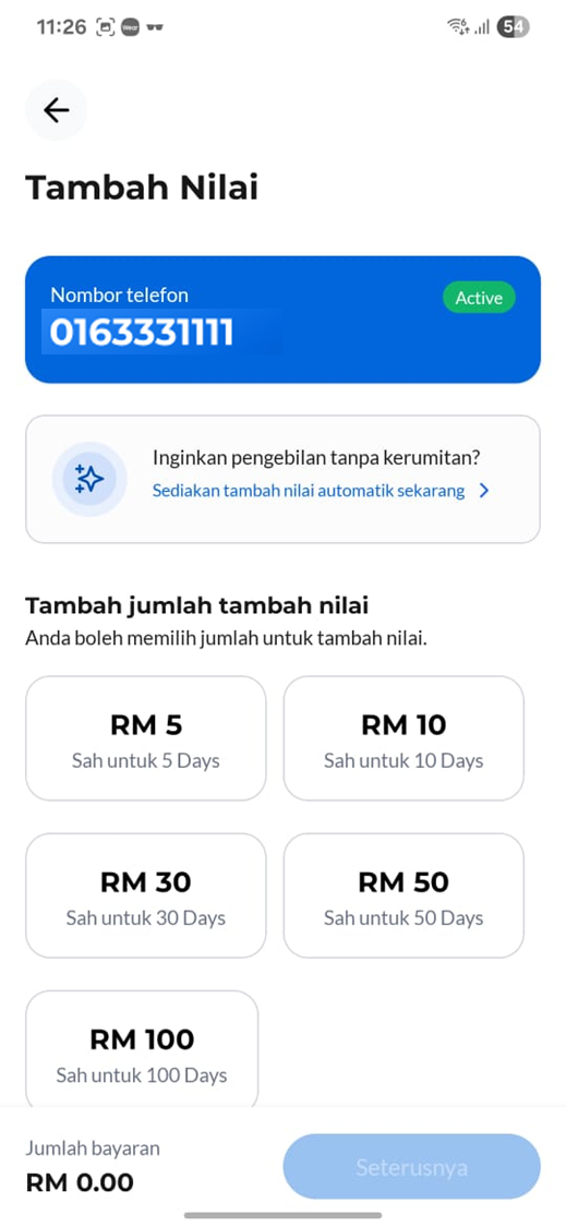 Langkah 2: Pilih atau masukkan nombor telefon yang anda ingin tambah nilai. | ![]() |