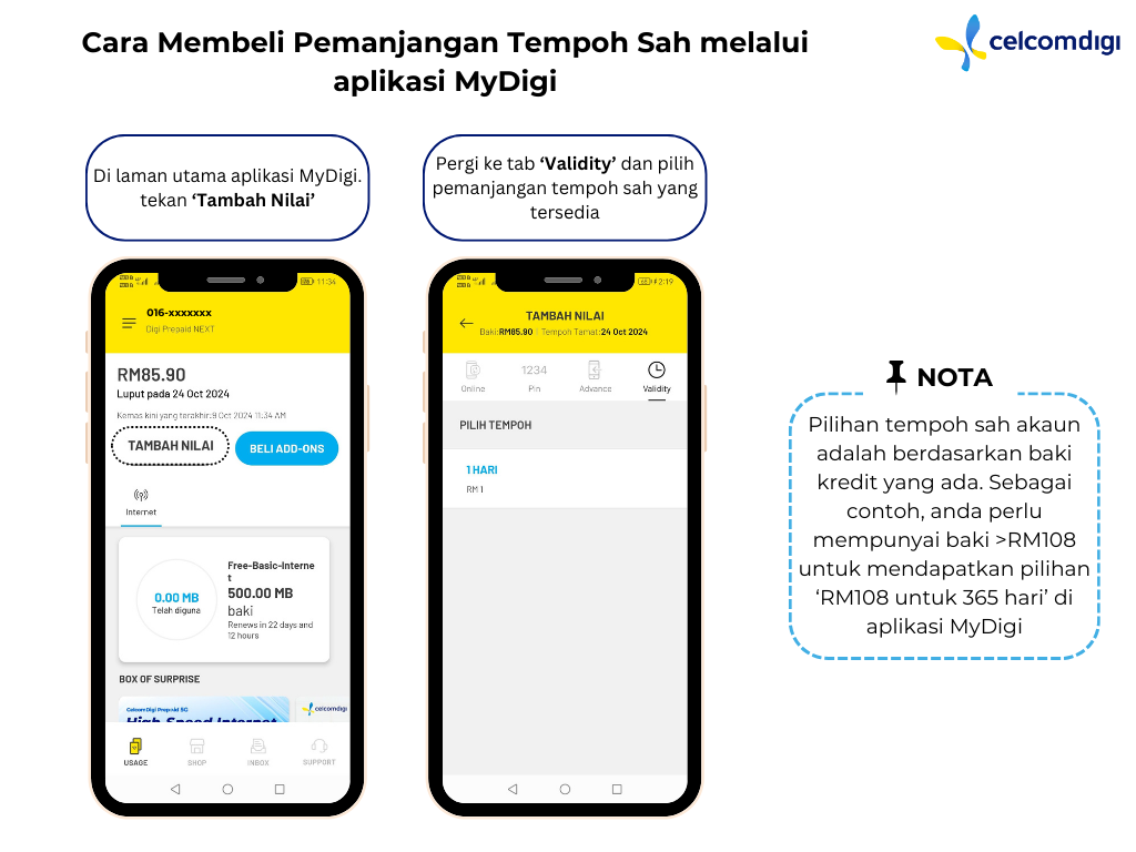 Ikuti langkah-langkah mudah ini untuk membeli pemanjangan tempoh sah: