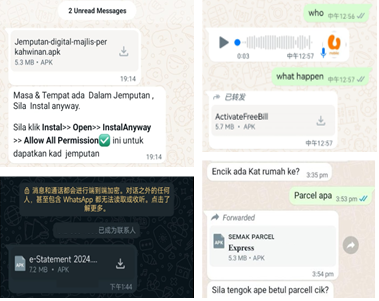 Seterusnya, penipu akan menghantar mangsa sebuah fail .APK (Pakej Penyusunan Aplikasi) atau pautan untuk memasang aplikasi yang tidak disahkan untuk tujuan menjadualkan temujanji dan membuat pembayaran.